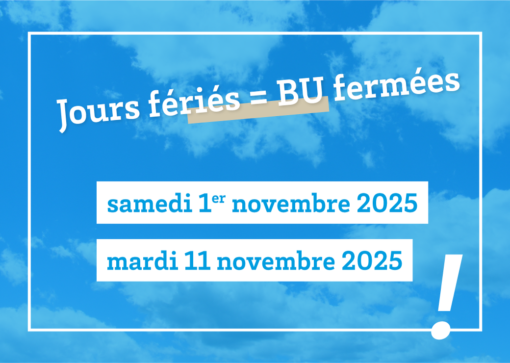 Pour rappel, l’ensemble des BU du réseau sera fermé le samedi 1er novembre 2025 ainsi que le mardi 11 novembre 2025
