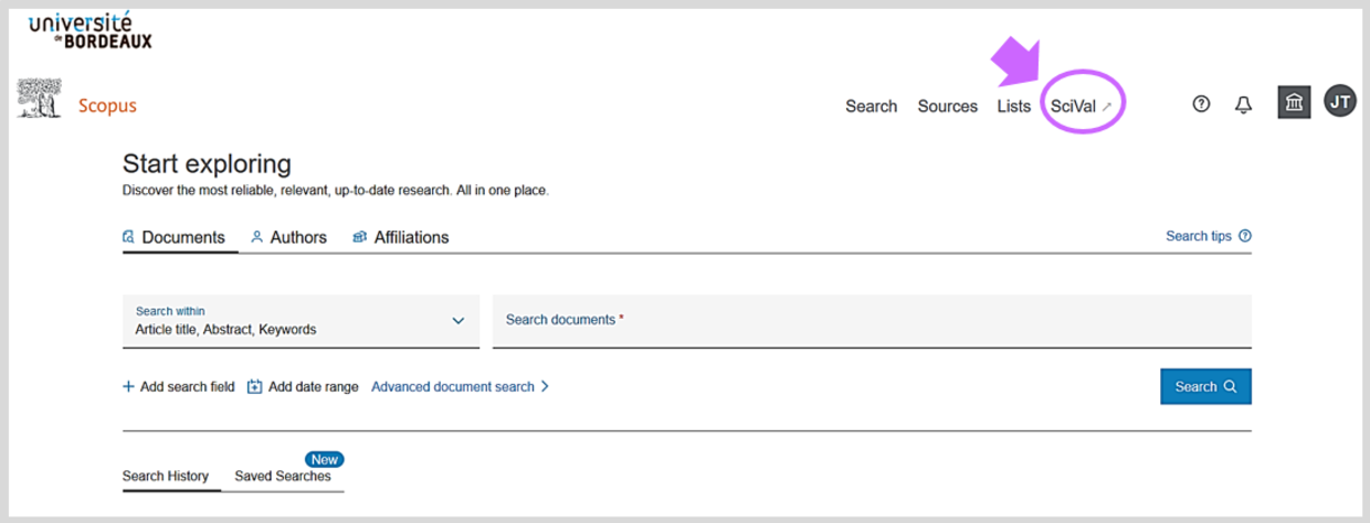 Une fois connecté à votre compte personnel sur Scopus, cliquez sur Scival, en haut à gauche de votre nom. Vous pouvez y importer des « set » pour produire des indicateurs d'impact à partir d'une liste de publications.